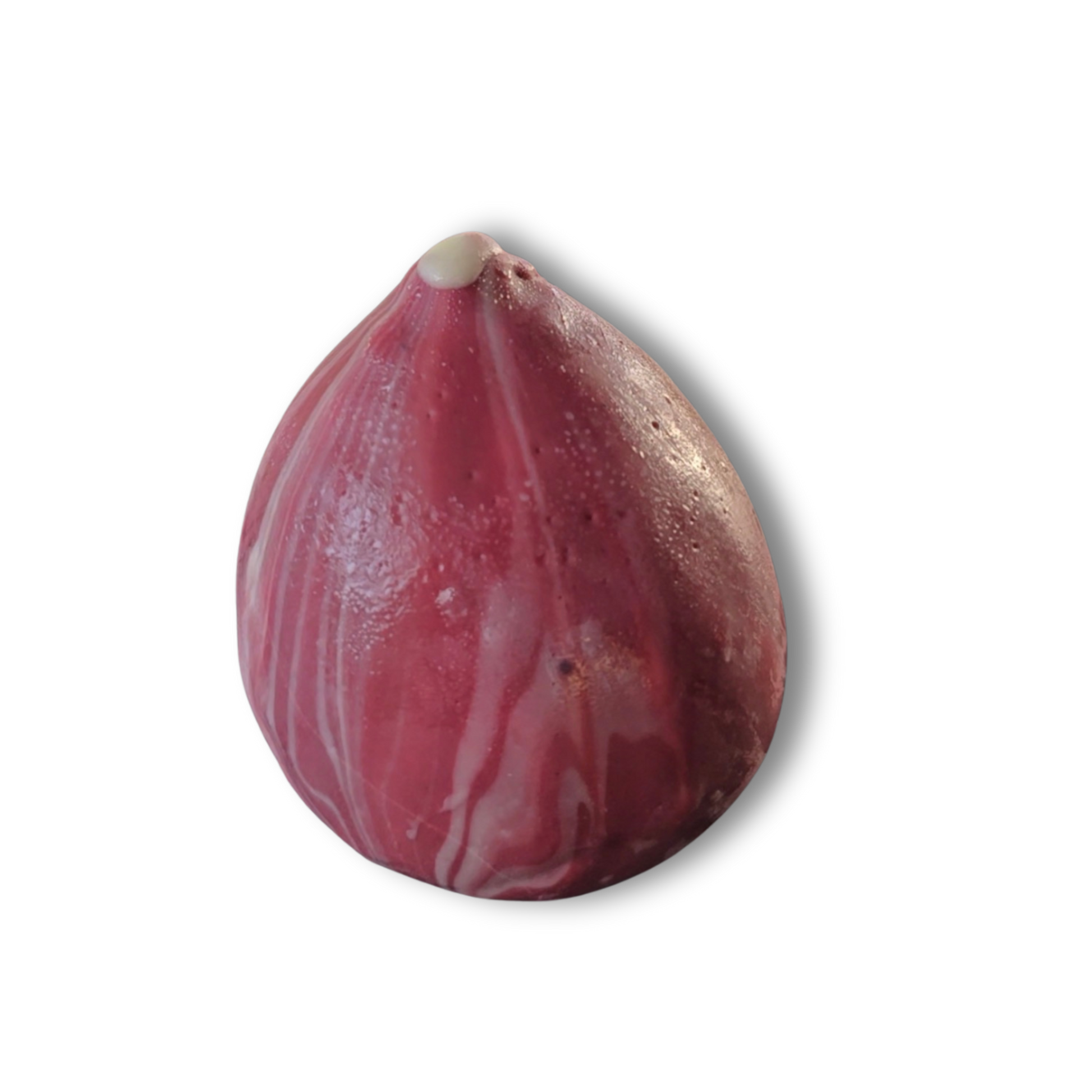 Notre trompe-l'oeil Figue est composé d'une ganache montée figue, une marmelade de figue vertes et rouges et d'un biscuit vanille sans gluten.